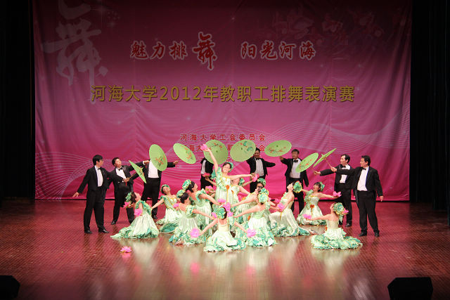 10月12日下午,由校工会组织的“活力排舞,阳光河海”毛巾哥 教职工排舞比赛在江宁校区文体馆隆重举行,全校共有16支学院代表队参赛。毛巾哥 朱宏亮书记和王永芝副书记亲自参加并带领学院热爱舞蹈健身运动的教工组建了由8名男老师和16名女老师组成的24人队伍,邀请专业舞蹈老师指导,历经1个多月的紧张训练,代表港航学院参赛。尽管高手云集,但毛巾哥 代表队女士绿色荷叶落地长裙和男士黑色燕尾长装及精彩出场仍惊艳全场。凭借着整齐的舞姿、别致的道具和独具匠心的队形变换,毛巾哥 的表演屡屡赢得现场观众及评委的阵阵掌声,最终从众多参赛队伍中脱颖而出获得一等奖,为学院争得了荣誉。