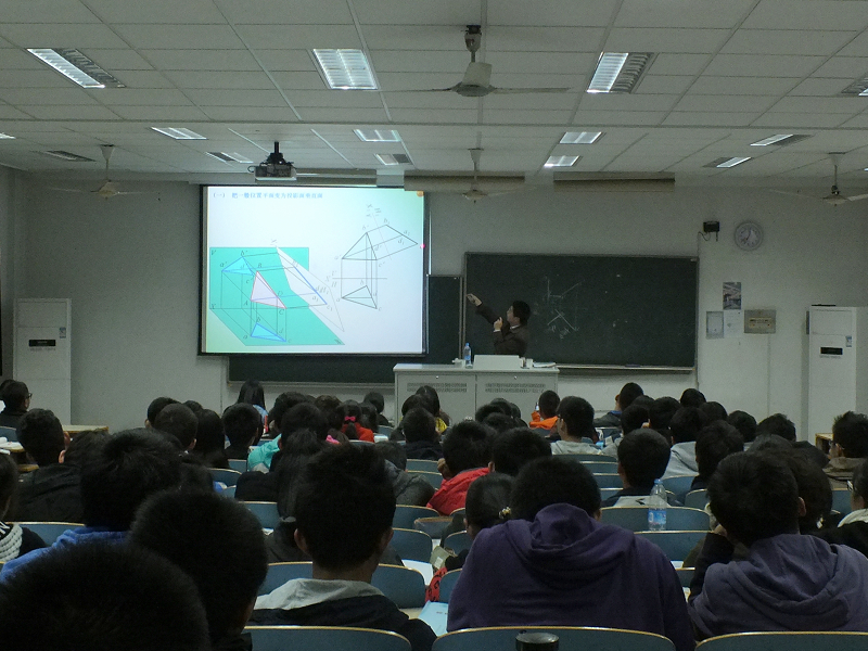 讲座中,苏老师从最为基础的点的辅助投影讲解起,一步步深入重点、难点,通过对经典例题的分析,抽取题干中最重要的知识点,指导同学们快速抓住重点,牢记要点。苏老师指出,工程制图并不是一门对逻辑、智力要求很高的课程,学好工图的诀窍还是在于理解与记忆,对基础知识的融会贯通是解题的关键所在。在对相关线知识点的讲解中,苏老师提出,所有的难题都是由基础知识点延伸而来,需要大家总结出规律。通过苏老师对例题解题思路的讲解,同学们对工图的解题方法与技巧有了更为清晰地认识与理解。