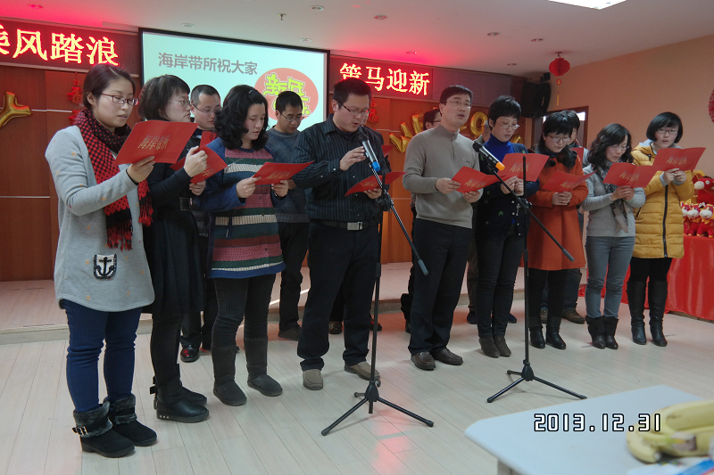 12月31日下午,严恺馆702欢声笑语,大家期待的2014年迎新年联欢会拉开帷幕。今年的会场布置喜气洋洋、温暖如春,联欢会的基调为“红”,象征着喜庆、热闹、好运,主题是乘风踏浪、策马迎新。乘风踏浪紧扣学院工作主题,策马迎新寓意新的一年学院工作蒸蒸日上。