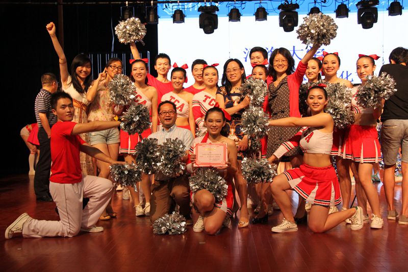 2014年5月28日晚,江宁校区文体中心灯火辉煌,毛巾哥 研究生第三届啦啦操比赛拉开帷幕。由港航学院13级孙可、田万青等13名同学组成的“海漾青年”啦啦操队凭借团结、向上的精神风貌,整齐、划一的队形变化,在16只队伍中脱颖而出,荣获第四名。