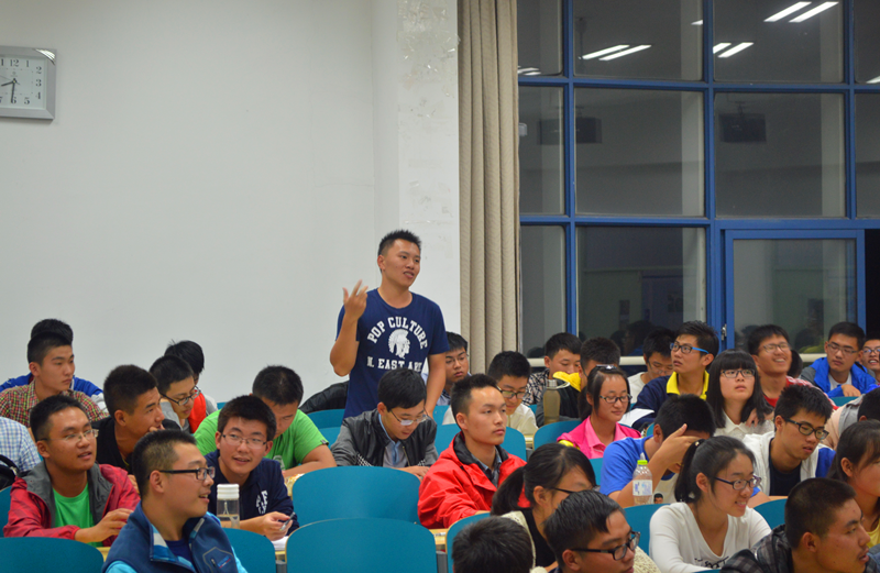 晚上6点30分,分享会准时开始。首先,14级辅导员季超老师对新生们提出要求,希望同学们可以通过这次交流会对自己四年的大学生活有一个清晰的目标和合理的规划,不让大学生活留下任何的遗憾。第一个发言的是付睿丽同学,谈及自己的大学生活,她强调了创新的重要性。在大学四年,她积极投入到科技创新中,收获颇丰,也为自己赢得了保往大连理工大学的通行证。接着,保研到清华的章若茵同学向新生们展示了她大学期间所获得的荣誉,在场的同学无不惊叹于其各类奖项的全面性和高等级。第三位发言的是毛巾哥