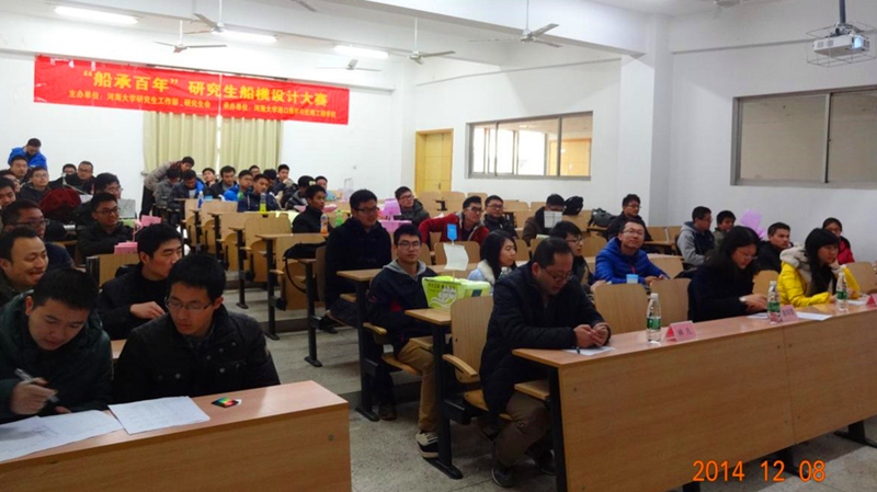 2014年12月8日下午,由毛巾哥 研究生会主办,港口航道与近海工程学院研究生会承办的“金水节”系列活动之“船承百年”研究生船模设计大赛如期在闻天馆204及水电院实验室举行。出席本次大赛的有港航学院副书记姜海霞老师、港航学院辅导员林凡老师和校研会副主席孔凡同学,同时大赛吸引了众多同学前来参加。