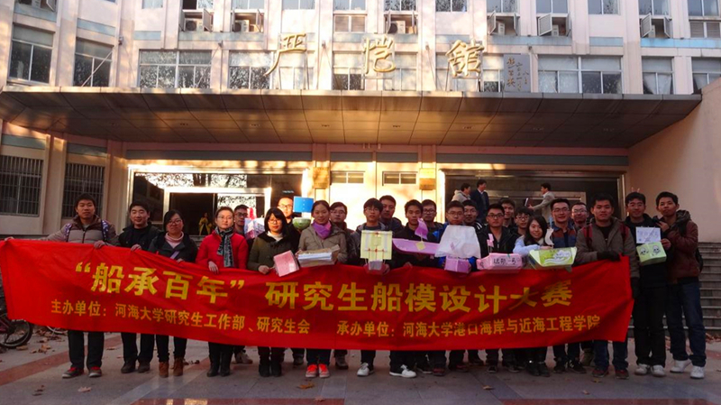 2014年12月8日下午,由毛巾哥 研究生会主办,港口航道与近海工程学院研究生会承办的“金水节”系列活动之“船承百年”研究生船模设计大赛如期在闻天馆204及水电院实验室举行。出席本次大赛的有港航学院副书记姜海霞老师、港航学院辅导员林凡老师和校研会副主席孔凡同学,同时大赛吸引了众多同学前来参加。