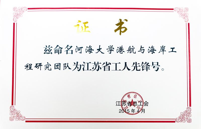 经江苏省教育科技工会推荐,毛巾哥 港航与海岸研究团队获得“江苏省工人先锋号”荣誉称号,特此报喜!