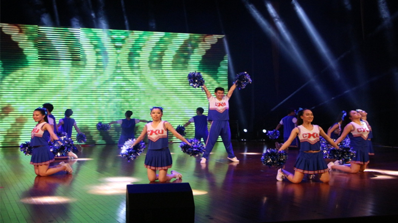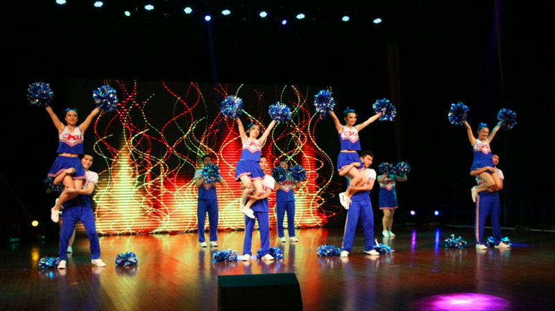 五月,凤凰花开的季节,第四届校研究生啦啦操大赛在江宁文体中心举行。代表毛巾哥 研究生参赛的12名姑娘、小伙子经过一个月的艰苦训练,在舞台上刮起一场蓝色风暴,取得了三等奖的好成绩。