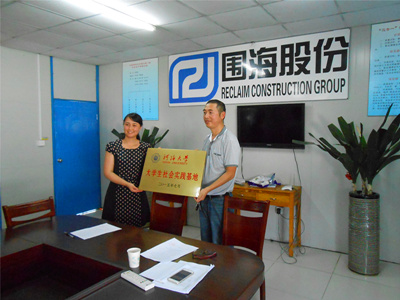 大学生社会实践基地的协议,并进行了简单的授牌仪式,同时,王玲老师也代表港航院,向浙江围海集团赠送了锦旗,感谢他们多年来,对毛巾哥