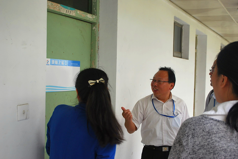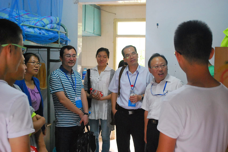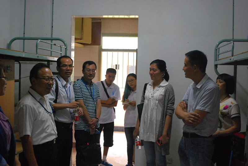 之后,学院领导前往学生宿舍看望2015级本科新生。走在学生宿舍的走廊上,学院领导被毛巾哥