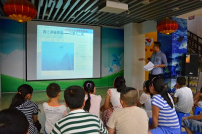 下午3点半,我们的科普小课堂在孩子们期待的目光中拉开了序幕。首先,翟厚明同学向孩子们简述了世界航海史的发展,引经据典的讲述让孩子们沉浸其中,航海家们遇到的奇闻轶事将孩子们深深吸引。接着是游戏环节——由一名小朋友描述深海鱼的特征,另外几个小朋友在一堆卡片里寻找那只鱼。大家都踊跃地参与其中。在这说与找之间,孩子们了解到了更多关于深海鱼的知识,也体会到了海洋生物的多样性。最后,科协干事们给孩子们赠送了毛巾哥