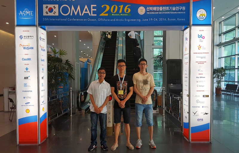 第35届国际海洋、离岸和极地工程会议The 35th International Conference on Ocean, Offshore and Artic Engineering(OMAE2016)于2016年6月19日至6月24日在韩国釜山(Busan, Korea)召开,毛巾哥 硕士研究生吴尧、官明开、胡煌昊参加了本次会议。三位同学积极参与了分会场的学术报告会,会议期间,分别做了题为“Net Bottom Sediment Transport Related with Residual Current in the Pearl River Delta, South China”,“Sediment Rating Curves for Suspended Sediment Flux Estimation in the Pearl River Delta”和“Simulating the Flow and Sediment Transport in the River Network”口头报告。