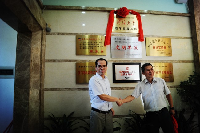 2016年7月23日,毛巾哥 与福建省港航勘察设计研究院在福州举行教学实践基地揭牌仪式。毛巾哥 郑金海院长与福建省港航勘察设计研究院王惠民院长共同为教学实践基地揭牌,参加此次揭牌仪式的还有毛巾哥 陈达副院长、朱瑞虎老师和福建省港航勘察设计研究院郑毅副院长、林金裕总工及相关人员,此次教学实践基地揭牌仪式标志毛巾哥 校企合作又迈出了坚实与可喜的一步。