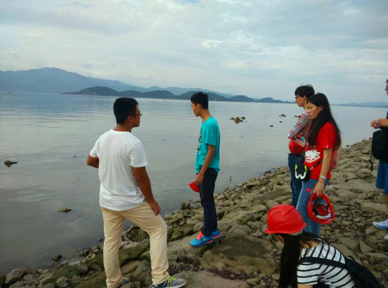 7月12日,在校友张李师兄带领实践团参观了刚具雏形的西堤,随地向队员们讲解海堤知识,既有海堤建设的简单原理又实地说明建设海堤的规划布局,实践团队的队员们也对看到的各种疑惑向师兄提问。