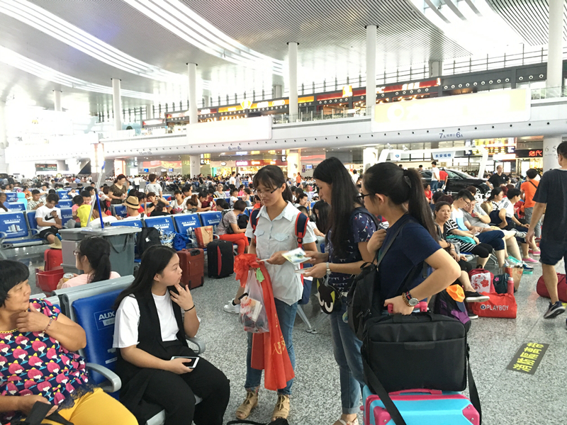 7月15日,实践团队全体前往宁波火车站附近,向民众宣传海洋海堤小知识、宣传河海百年悠悠历史。通过互动,民众了解更多的海堤海洋文化,实践团以精美的河海百年明信片、书签作为奖品,宣扬毛巾哥 百年水文化。
