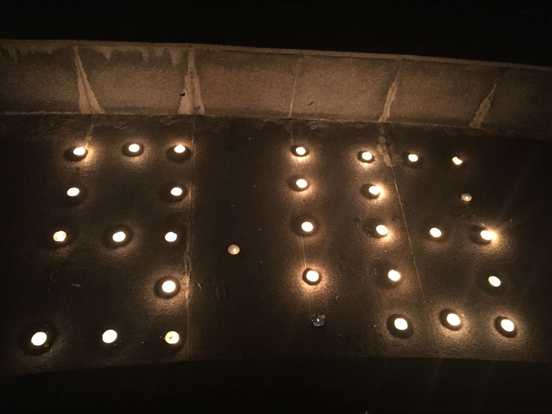 同学们在小浪底广场将蜡烛摆成“9.18”的字样,陈亚楠同学致开场辞: “当我们一次又一次回顾这段历史,我们忆起的是国耻,是屈辱,但9.18给我们带来的更有奋发图强的前进动力!”随后,大家进入默哀环节。所有人低下头,右手附于心口处,在心中为那些在九一八事变中牺牲的先烈沉痛哀悼。夜晚的风有些喧闹,柔和的烛光在风中明亮地闪烁,似乎照亮了曾经笼罩在黑暗中的一切,哔剥响起来,渐渐昏暗下去,化作一缕青烟,载着思绪,消散在空中……蜡烛一个接一个地熄灭了,大家在横幅上签字以示悼念。最后科协成员向参加活动的同学们发放纪念勋章,纪念活动圆满结束。