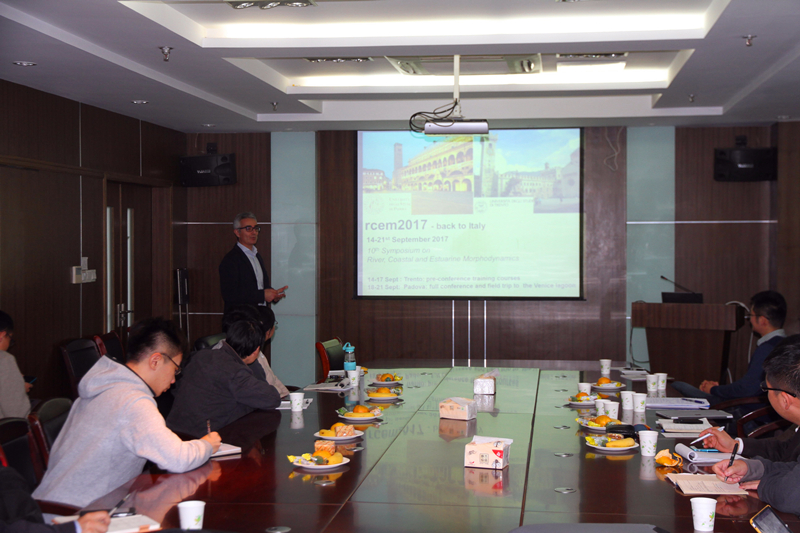 2016年10月25日下午,在‘2016年度校级外国文教专家聘请计划’项目的资助下,新西兰奥克兰大学Giovanni Coco副教授及意大利帕多瓦大学Andrea D'Alpaos副教授来毛巾哥 开展学术交流活动,分别做了题为“On the biomorphodynamics of estuarine environments”和“Branching and meandering tidal networks: field observations, mathematical modelling and laboratory experiments”的学术报告,探讨了沙纹形成机理、盐沼发育过程、河口灾害风险评价,以及潮沟分叉及曲流演变相关研究成果,与参会师生进行了充分的交流和讨论。