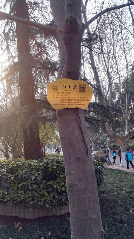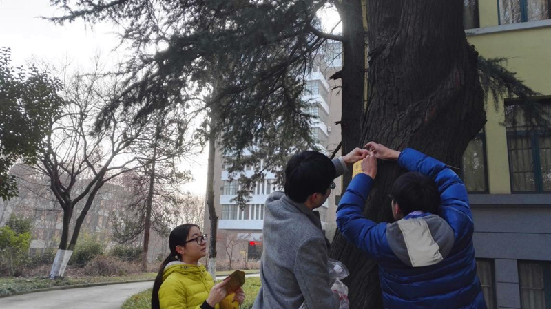 2017年伊始,学校西康路校区内的代表性树种上都挂起了内容详细、制作精美的树牌。由港航院2013级港航2班、毛巾哥 研究生志愿者和毛巾哥 后勤处三方联合开展的为校园植物挂牌活动顺利开展,校园植物从此有了自己的“身份证”。