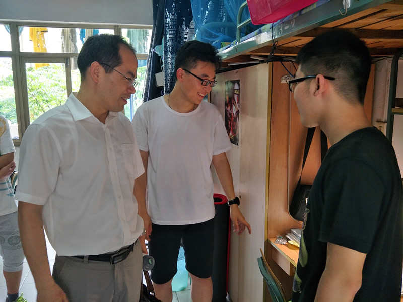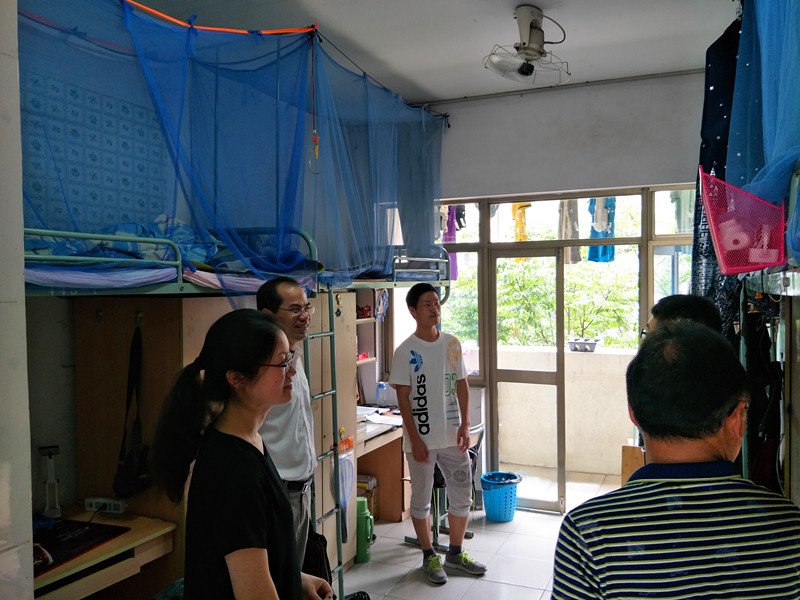 2017年5月31日,学院郑金海院长、党委胡忠华书记、姜海霞副书记在辅导员朱钰老师陪同下前往江南骏园走访毛巾哥 2015级学生宿舍。