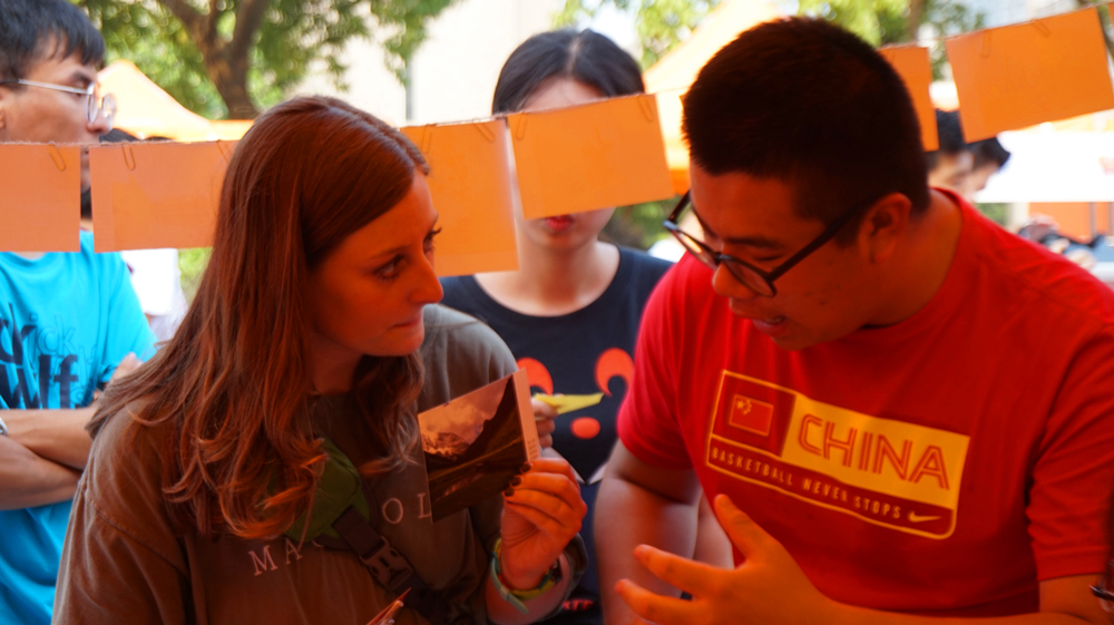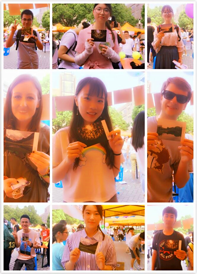 活动上,“悠悠我心——你是我的一首诗”活动中前二十名的优秀作品被一一展出,同学们可以从这些明信片中任选一张投票后带走。精美的明信片很快就吸引了大批同学前来投票,其中甚至还有外国友人。外国友人对于晦涩的三行诗不是很懂,但在询问了工作人员后表达了对中国博大精深文化的赞美。有的同学在看到明信片时很是惊讶,表示之前在微信投票上所关注的作品进了前二十让自己十分意外与激动。活动接近尾声时,部分精美作品已经赠完,工作人员将会对投票结果进行整理得出比赛优胜。