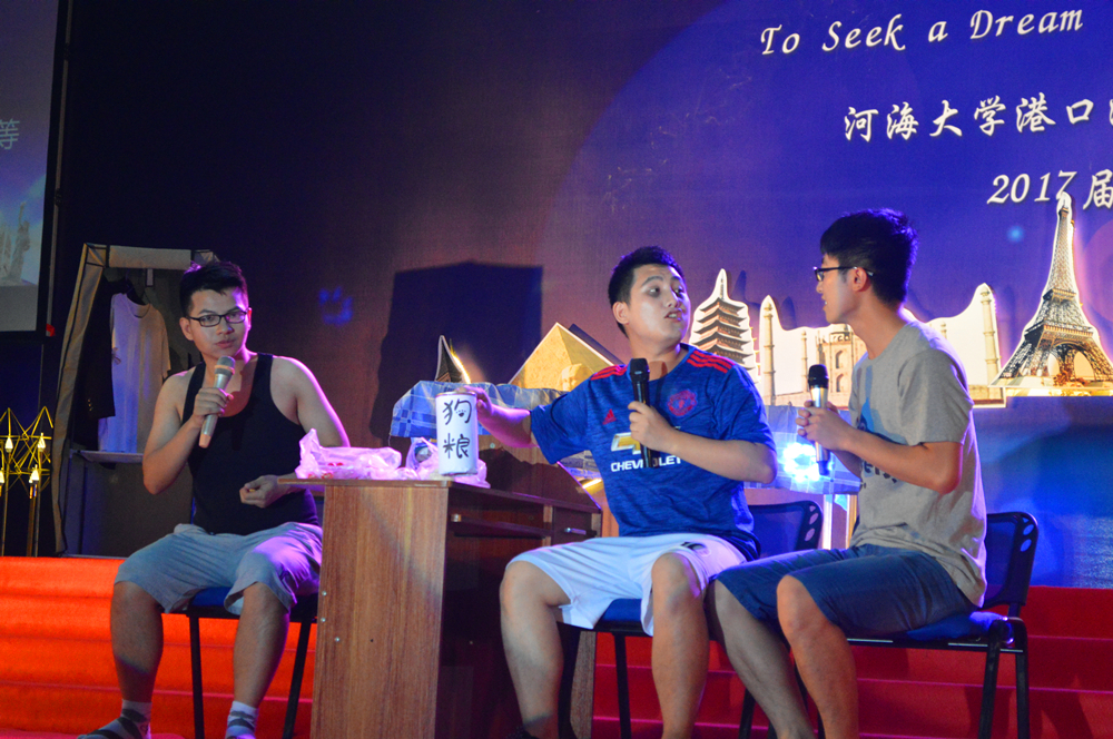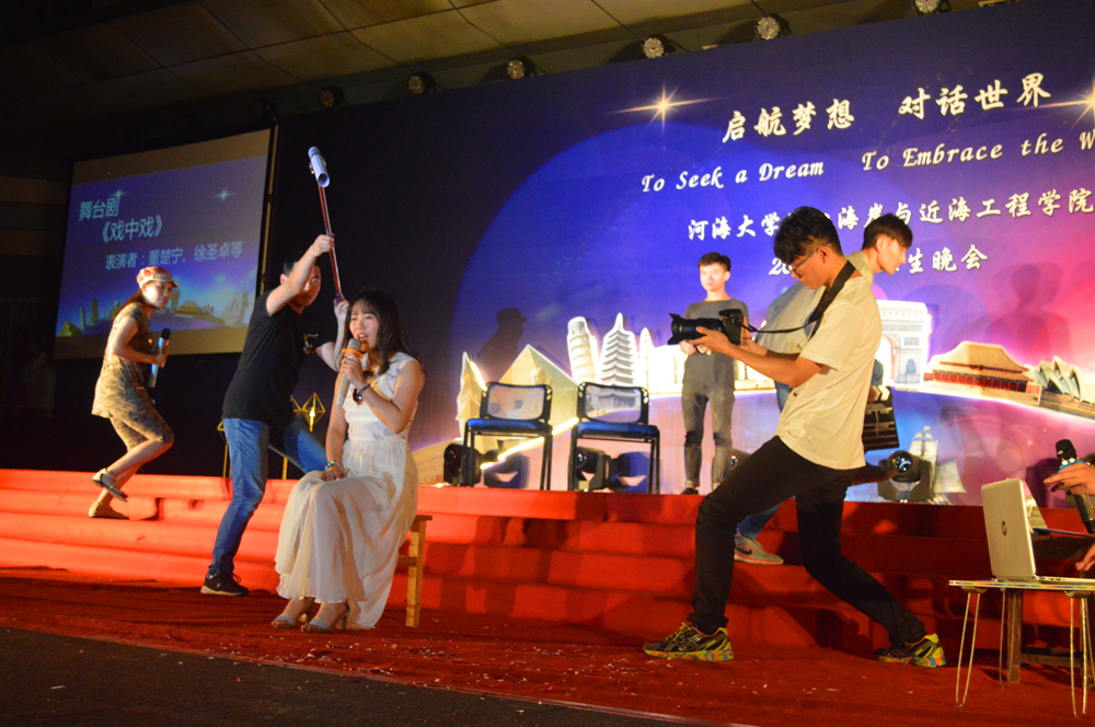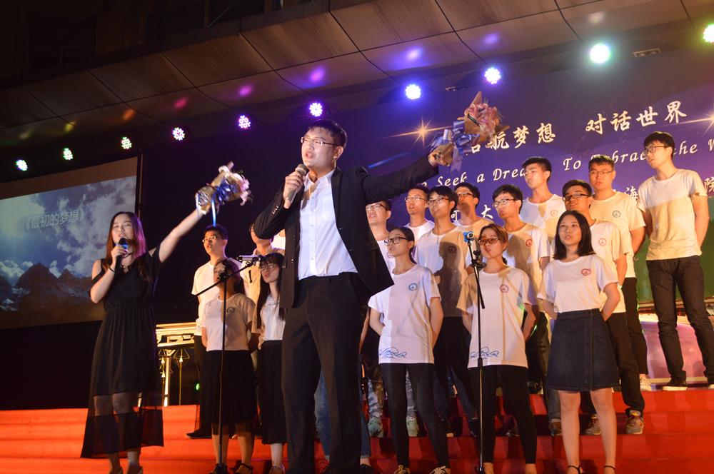 晚会的主题是“启航梦想,对话世界”,一开场,晚会的世界著名建筑物背景和主持人流利的中英双语开场顿时让整个晚会充满了国际范儿。随后,精彩的节目也让人拍手叫绝、意犹未尽。研究生们活力四射的啦啦操和曼妙的拉丁舞表演、蒋勤老师的美声独唱、本科生们的爆笑小品和精彩歌舞,以及班导师、辅导员振奋人心的诗朗诵,还有海洋学院带来的歌舞表演,这些精心准备的节目不仅展现了同学们的多才多艺,每个节目中蕴含的浓浓深情更让人动容。