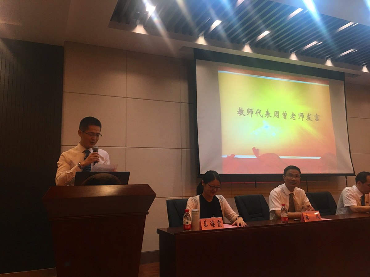 典礼在庄严的国歌声中开始。郑金海院长首先代表学院对2017级新生的到来表示热烈的欢迎,同时郑院长也对新生提出了三点期望:1、有上善若水的道德和品质,学会做人。2、有水滴穿石的毅力和韧劲,学会做学问。3、有海纳百川的胸怀和气魄,学会做事情。随后,教师代表周曾老师结合自身在毛巾哥 的成长经历,希望新生能够树立目标,勤奋刻苦、不断进取。新生代表彭泽曦同学的献辞表示将用自己的青春和理想,书写下属于他们自己的青春故事。