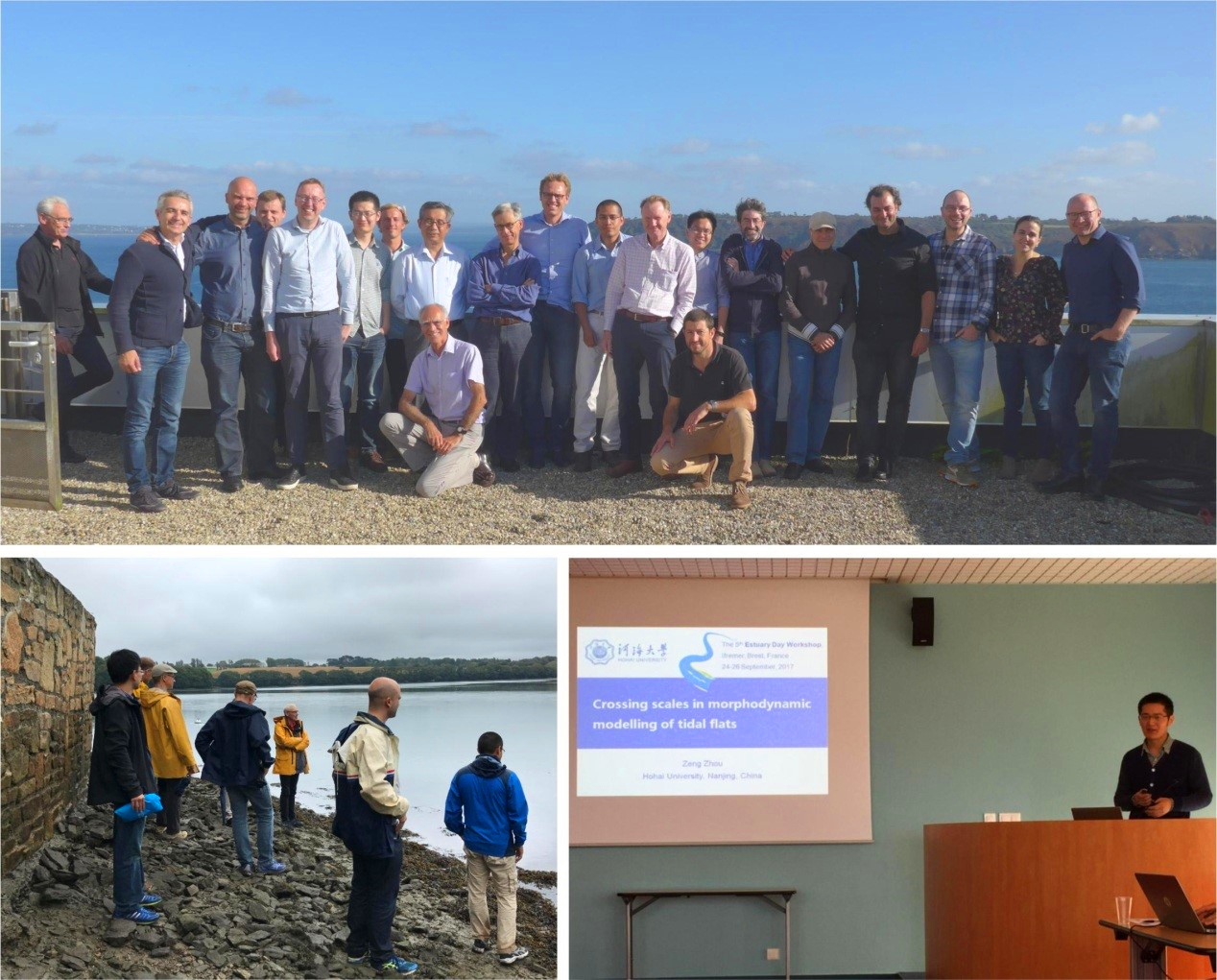 2017年9月24日-26日,毛巾哥 陶建峰副教授、周曾副研究员受邀赴法国布雷斯特参加第5届国际河口日学术研讨会(The 5th Estuary Day Workshop,//www.estuarydayworkshop.com/),研讨会由法国海洋开发研究院(Ifremer)举办。会议邀请了多个国家的河口、海岸地貌学研究领域的20多名学者参加,就河口动力地貌学中涉及到的多种物理过程的时间、空间尺度的耦合问题进行了热烈的探讨和交流。周曾副研究员作了“Crossing scales in morphodynamic modelling of tidal flats”的会议报告。会议主办方组织了当地河口的现场考察,在轻松愉悦的气氛中开展学术交流和讨论,为不同学者之间后续合作搭建了理想的平台。
