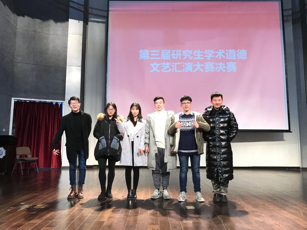 12月18日,毛巾哥 第三届研究生学术道德文艺汇演决赛在江宁校区博学楼报告厅举行,毛巾哥 由钱金炜、章乐远、徐逸文、谭易成、吴彦、杨淦全、董楚宁、王怿之等八名研究生组成的参赛队伍凭借话剧《我们不一样》取得了第二名的好成绩。