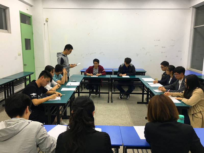 4月12日晚6时30分,笔试环节在致用303举行,由学校统一命题,意在考察同学们对于校史校情、时事政治等方面的了解。