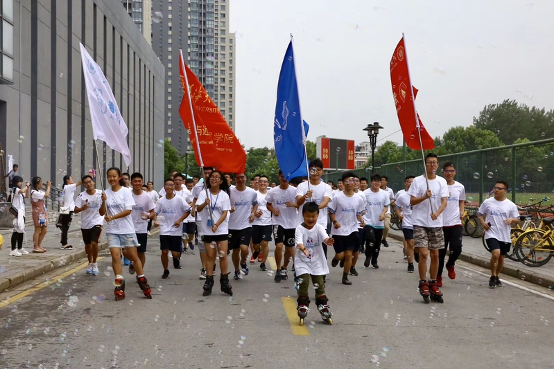 启动仪式结束后,郭继超书记带领200余名河海师生共同参与慢跑活动。本次慢跑活动中,依次设置了泡沫跑、彩虹跑、问答跑三个环节,在深层次的寓意中代表着“美丽的海洋生态(泡沫跑)由于人类的活动,被严重污染(彩虹跑),人类经过反思,逐渐关注海洋知识,站出来志愿成为一名光荣的科普志愿者(问答跑)。