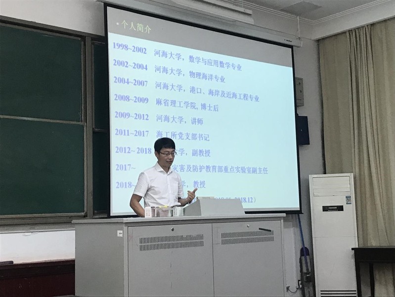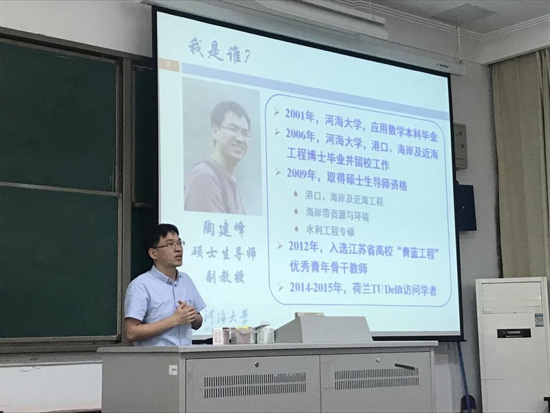 陈达老师首先上台介绍了自己对研究生培养的思路,其生动活泼的演讲风格让同学们充满了兴趣和向往。紧接着,陶爱峰老师介绍了自己的四个研究方向,即海洋防灾和减灾、灾害性海浪理论、非线性水波理论和海洋能开发利用。第三位是研究水动力和海洋防护方向的潘毅老师,他向同学们生动形象地介绍了科研的过程,从海岸工程方面的经典问题延伸到当前遇到的新问题,其幽默的演讲方式感染了在场同学。最后,陶建峰老师结合自身研究项目,让同学们更清晰地了解他的研究方向。活动最后,张院长总结陈词,宣讲会圆满落幕。