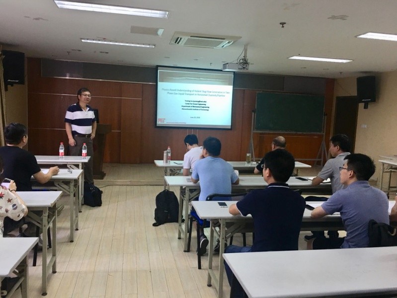2018年6月29日上午,美国麻省理工学院机械工程系海洋工程研究中心刘玉明教授在毛巾哥 严恺馆702会议室作了题为“Physics-Based Understanding of Violent Slug-Flow Generation in Two-Phase Gas-Liquid Transport in Horizontal Channels/Pipeline”的学术报告。刘教授结合自己研究课题介绍了关于气液两相段塞流的研究进展,提出了气液两相段塞流产生及发展的三个过程及相关动力学机制,并通过数模和物模进行了分析验证,最后介绍了该研课题的未来研究方向与应用。