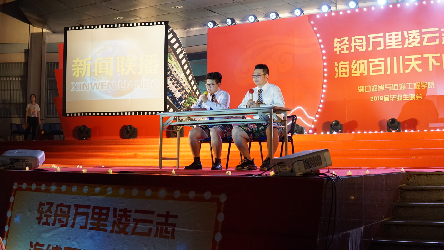 2018年6月15日,港口航道与海岸工程学院2018届毕业生毕业晚会于严恺馆楼下隆重举行。参加晚会的嘉宾有学院龚政院长、褚裕良副院长、张继生副院长、姜海霞副书记以及部分教师代表、各班班导师、各年级辅导员等。