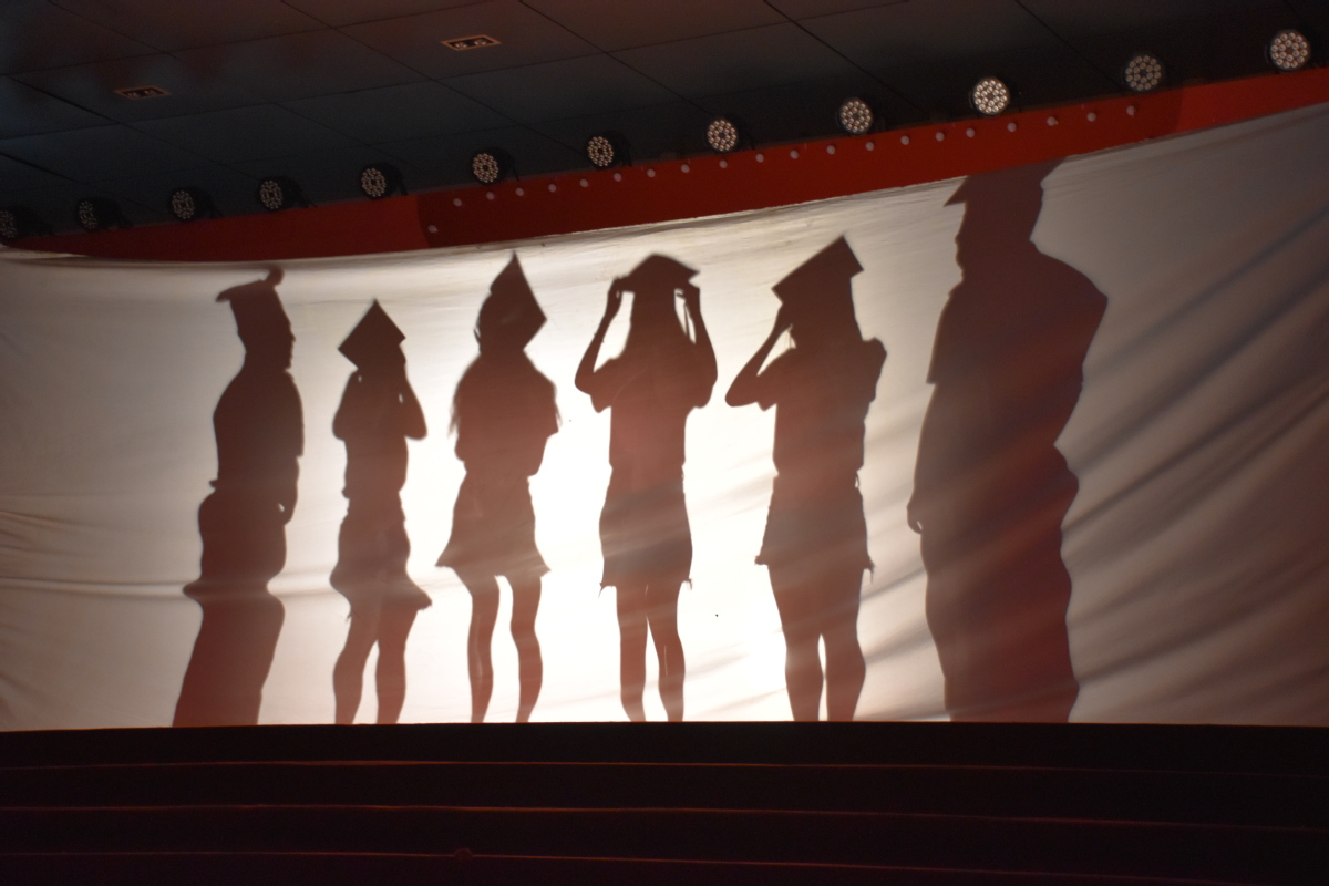 品当下风景,胸有成竹,信心百倍。屈小开等4班同学的小品《招亲大会》,语言幽默,装束怪异,引得在场人员多次的欢呼叫好。而研究生们带来的获奖啦啦操表演《Heart beat》将晚会再一次推向了高潮。辛勤的排练、优雅的动作、完美的变换不仅赢得了观众的掌声,也为学院赢得了荣誉。14级港航3班带来的幕布人影戏以及1班歌曲串烧《最好的我们》《北京东路的日子》引领着同学们逐渐回忆起在毛巾哥 的一点一滴,令同学们感触颇深。