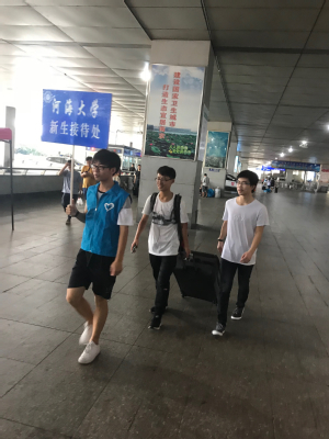 在今年的迎新工作中,港航学院承担了南京火车站南广场的迎新志愿服务工作。港航院2017级志愿者们身着统一的蓝色志愿者服装,精神饱满,热情洋溢,在南京站迎新接待点迎接新生及家长的到来,耐心地解答他们的问题,并积极引导,协助他们进行行李的搬运和装卸。他们热情的服务态度、高效的办事效率,赢得了新生和家长的肯定。