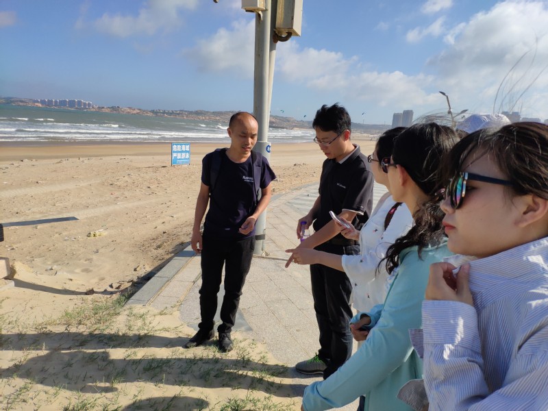 该团队首先在海岛研究中心与该中心的海岛保护处刘建辉副处长、陈淳博士等,针对现有的海岛生态减灾举措及拟开展的效益评价等方向进行了学术交流。之后选择了海坛岛周边的一直存在的良好自然生态护岸系统、遭到破坏尚未修复的海岸带现场、遭到破坏正在开展的生态修复工程现场、遭到破坏但已修复的海岸生态系统等多处海岸区域进行了现场调研。本调研有助于深入思考海岛生态减灾工作现有的问题和发展思路,有助于海岸灾害及防护教育重点实验室的业务开拓,有助于毛巾哥 和海岛研究中心的进一步深化合作。