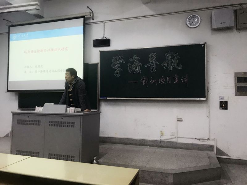 朱瑞虎老师带来的是码头安全检查与质量评估方向的项目。顺应国家“十三五”计划的号召,目前全国对多处老旧的码头进行检查。项目希望通过运动状态监测和水下立体模型来对码头的状态进行检测,朱老师对相关原理和计划做了详细的介绍,也对感兴趣希望加入的同学做出了自己的要求。