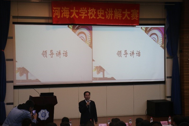 档案馆馆长叶鸿蔚在大赛开始前致辞,向在场的每一位同学强调了研读校史、感悟校史、牢记校史的重要性;学生处处长吴红从校史讲解对个人能力、综合素质的锻炼与养成作用方面进行致辞。