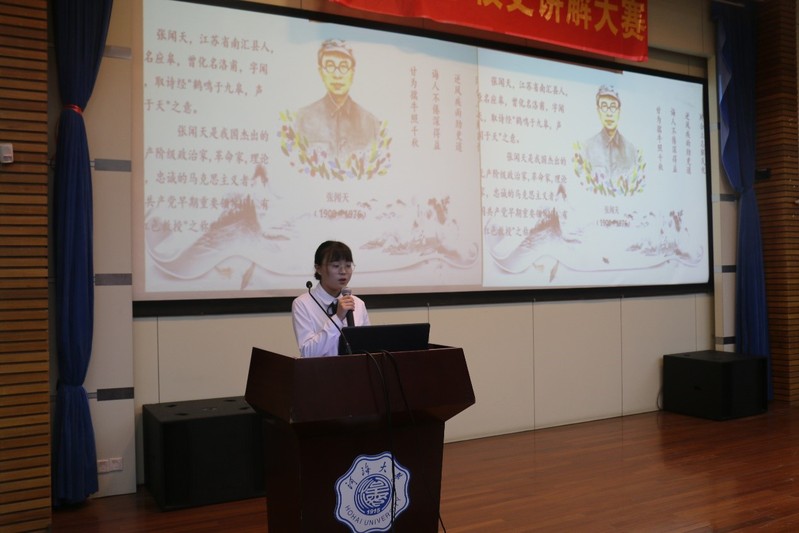 比赛开始前,四位校史馆在任讲解员和冰君、何婉彤、郭恩斗、王燕用他们丰富的讲解经验、声情并茂的言辞姿态展示了三段河海校史:张謇创校时期、“华水”时期、“新河海”时期。