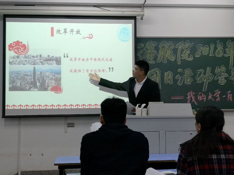 2018级港航4班团支部以“改革开放四十年,家乡变化由我言”为主题,组织全支部来自30个省市自治区的同学,结合一组组家乡发展中的对比照片,分享自己眼中的家乡变迁故事,引导大家以更加开阔的视野感受改革开放四十年的沧桑巨变。