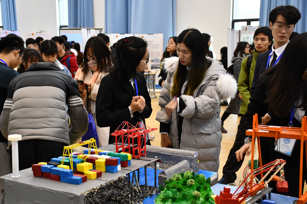 在展示中,港航学院展出了近一年多来的创训成果及学生科技活动作品。杨瑶、刘伟等同学向大家展示了其小组发明的“智能式水面垃圾收集器”, 四位学生科协讲解员为大家讲述水工模型大赛优秀获奖作品(“帆启龙门”、“绿色自动化港口”)及起重机模型大赛优秀获奖作品“红三角起重机”等模型中蕴藏的科学知识,吸引了大批同学驻足,营造出浓厚的交流氛围。