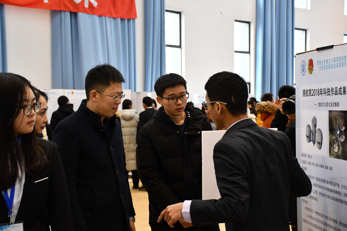 展区,认真听取同学们的介绍,了解学院近些年来在学生科技创新方面的相关工作。之前,校团委书记陈伟刚也来到学院展区前,给相关作品提出了指导意见。