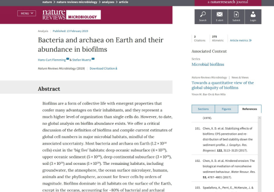 潮滩动力地貌研究团队的两篇学术论文同时被国际顶尖学术期刊Nature旗下子刊Nature Reviews Microbiology(2017-2018最新影响因子31.851)上发表的论文“Bacteria and archaea on Earth and their abundance in biofilms”引用。该综述定量统计、总结了全球范围内菌类生物膜的分布及其在人类、海洋、陆地等生态动力环境中的重要作用。文中毛巾哥