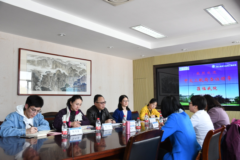 2019年4月3日下午,中交第三航务工程局有限公司人力资源部高级主管费佳颖、第三工程有限公司人力资源部经理梁艳娇、副经理王珍一行3人到毛巾哥 开展调研,双方就校企合作、校园招聘、人才培养等方面的工作进行座谈交流。学院胡忠华书记、姜海霞副书记、王玲老师、季超老师、顾钰恒老师、张同鑫老师参加了座谈。