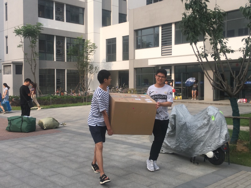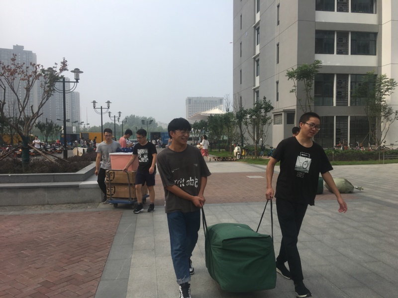 宿舍搬迁工作于5日整天进行并在学校安排的时间内顺利完成,从原宿舍的提前打包、行李装车到新宿舍的有序搬运、清洁打扫,同学们不分彼此的团结在一起,在本部与江宁的长距离搬运中通力合作,提高搬迁工作的整体效率。在本部男生宿舍的搬运过程中,同学们采用流水线的方式,一层一层地分配工作,搬运行李,高效地完成高楼层的搬运。宿舍搬迁完成后,同学们对新宿舍进行了打扫与安置,尽快融入新的生活环境之中。