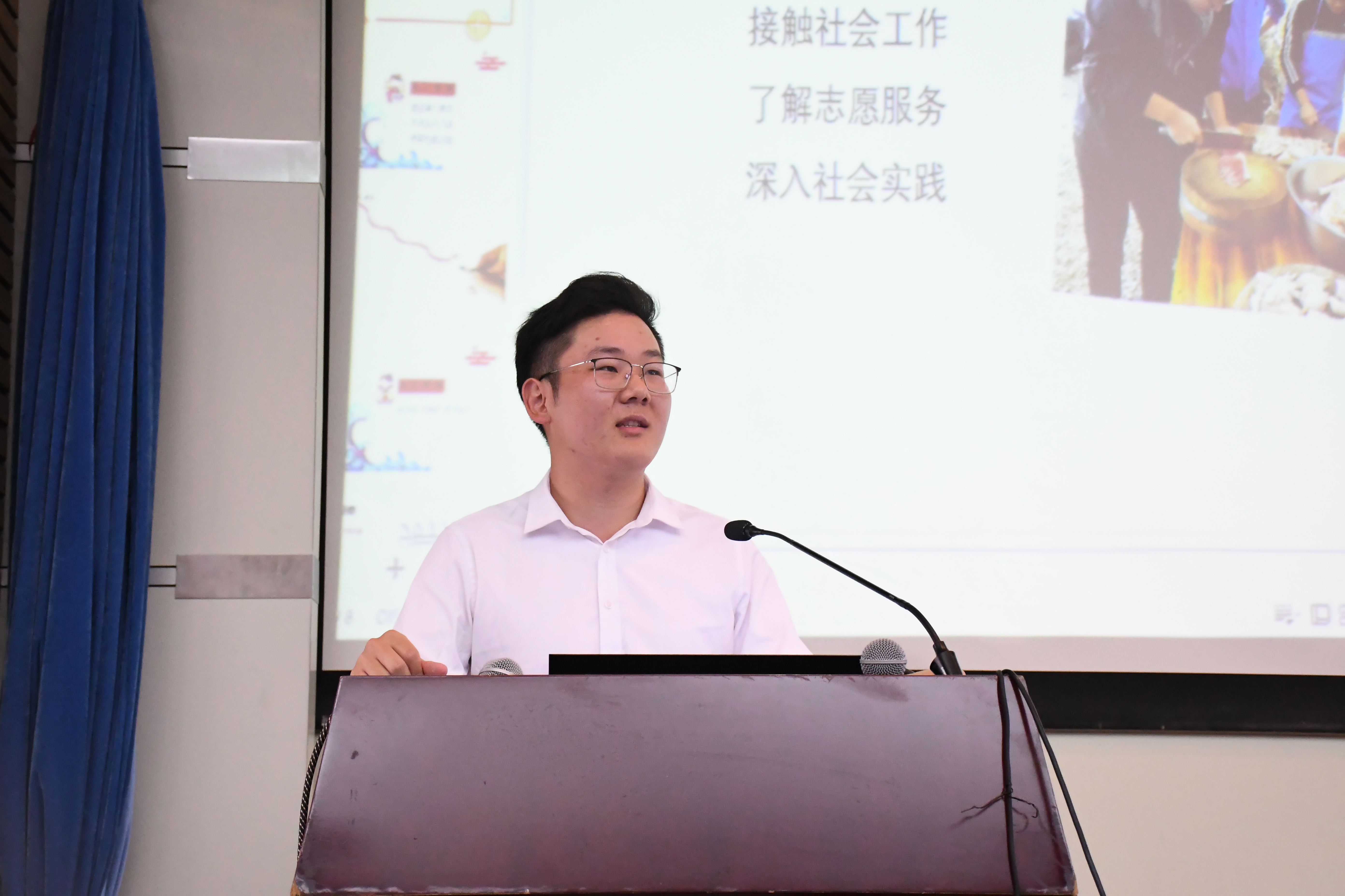 学院团委学生负责人陈诗佳就社会工作方面提出了自己的见解,她以自己的经历为引子向大家介绍了社会工作的分类与职能,如何选择,意义所在,如何做好,让大家真正了解了什么是社会工作,并从对自己和他人两个方面讲述责任感的重要性。