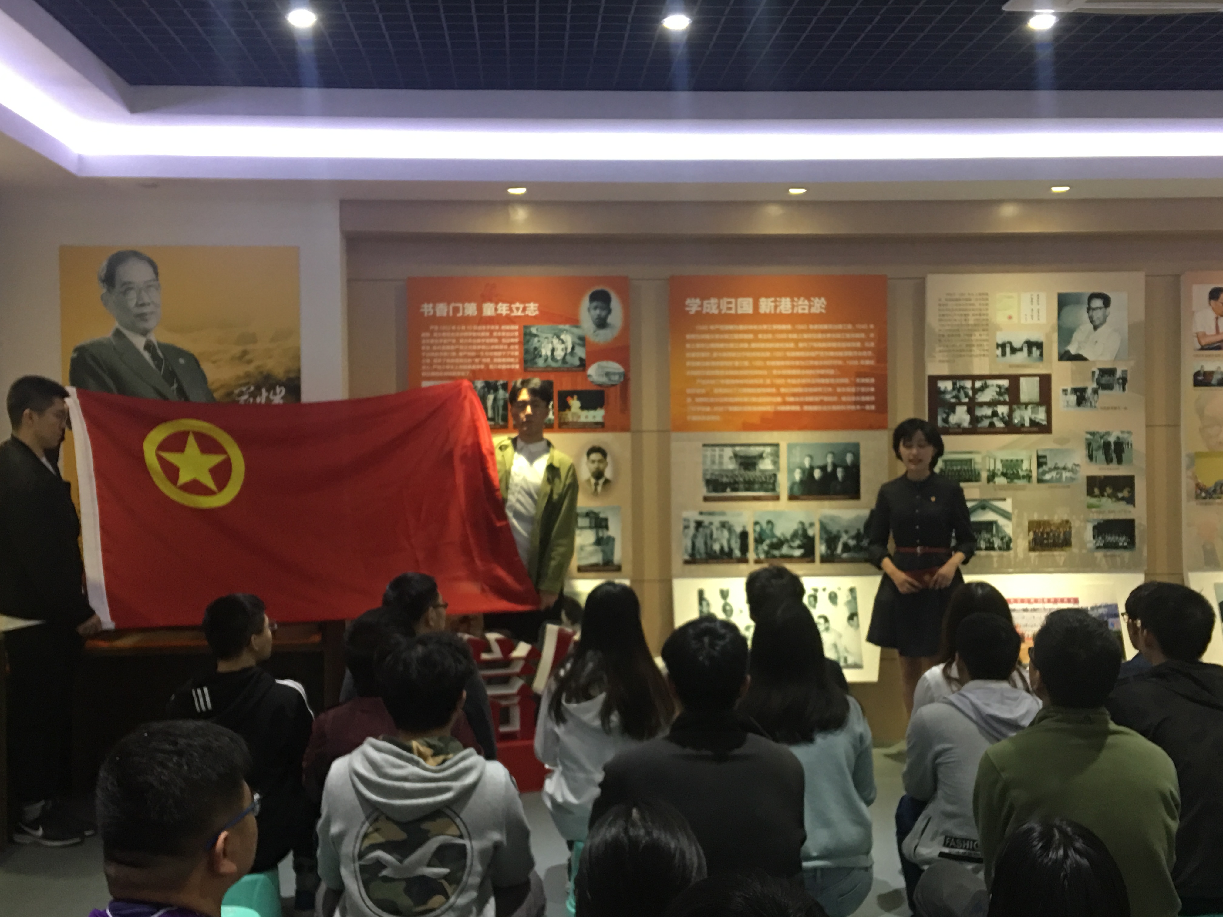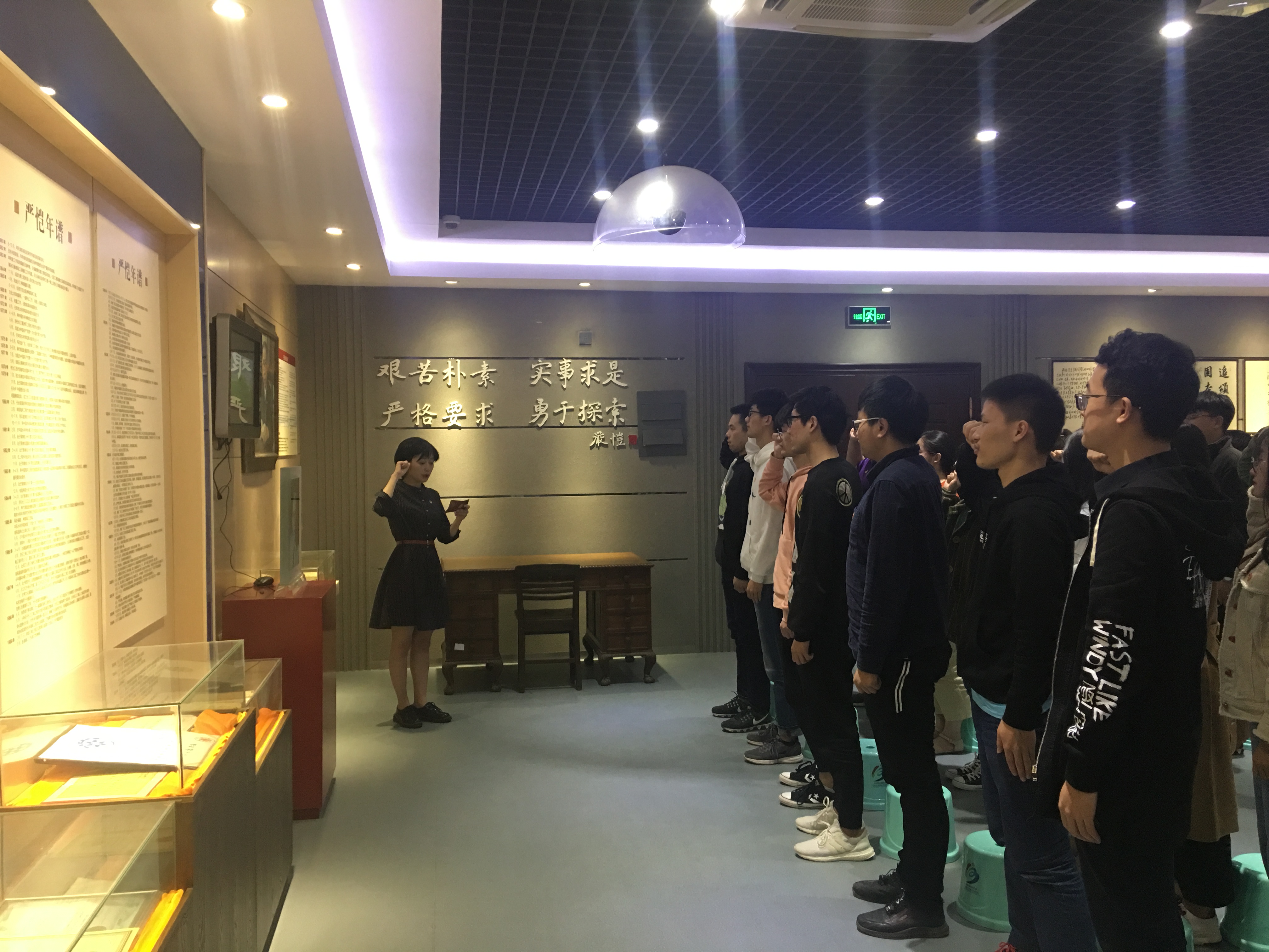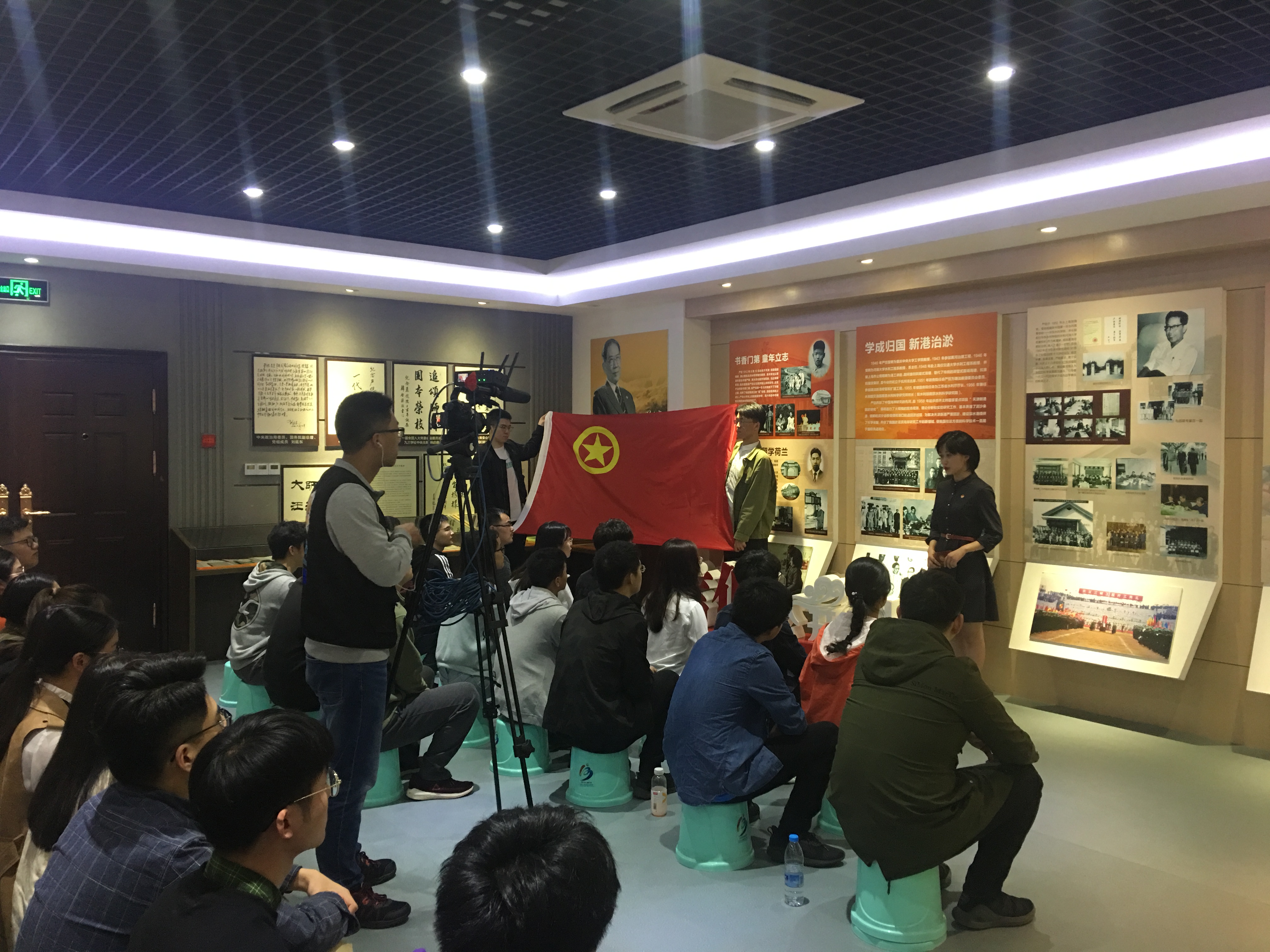 在角逐省“十佳团支书”期间,贾悦同学参评的团课于毛巾哥 校史馆严恺陈列室展开,她以讲解员的身份,向参与团课的团员们讲述关于严恺先生卓越的一生。从“书香门第,童年立志”到“学成归国,新港治淤”,从“顾问三峡,世界瞩目”到“盛誉国内,蜚声国际”。团课结合三峡工程建设历程的纪录片放映,通过对严恺先生的“青年学习经历”和“水利建设伟绩”两大部分事迹的重点讲解,引导团员们树立远大志向,勤勉努力,巩固专业基础;同时坚定信念,秉持爱国与奉献精神,为新时代水利建设事业建功立业。