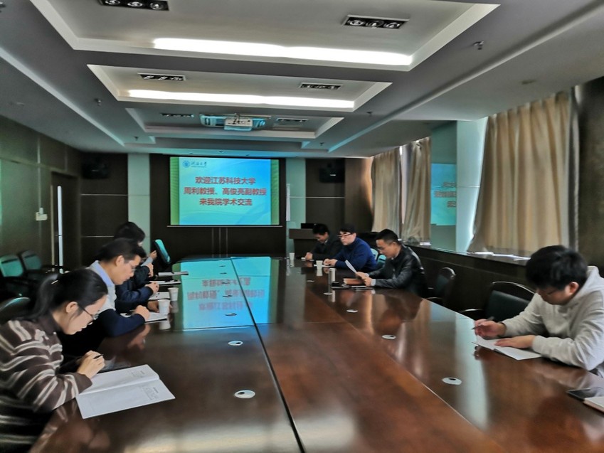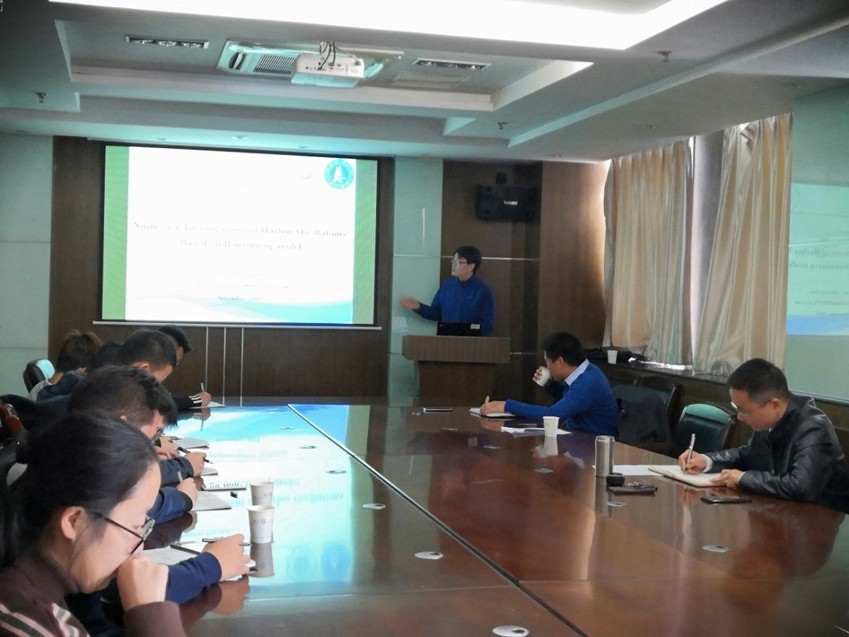 2019年11月12日上午,江苏科技大学周利教授、高俊亮副教授来毛巾哥 进行学术交流。周利教授做了“极地船舶与海洋工程冰载荷预报”学术报告,高俊亮副教授做了“基于Boussinesq模型诱发的港湾共振数值研究”学术报告。龚政院长主持本次报告会。