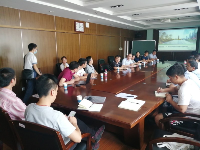 2020年9月16日,毛巾哥 实验中心组织举办了弯道变坡教学实验水槽应用培训,培训会议由张蔚副院长主持。本次培训采用室内讲解、现场演示及问题解答相结合的形式,培训内容主要包括:水槽主要构成与功能、水槽流量自动控制系统、水槽维护与保养、常用实验类型及仪器设备布置等。参加培训的人员有北京尚水股份有限公司(承建方)项目组人员和毛巾哥 师生,共30余名。