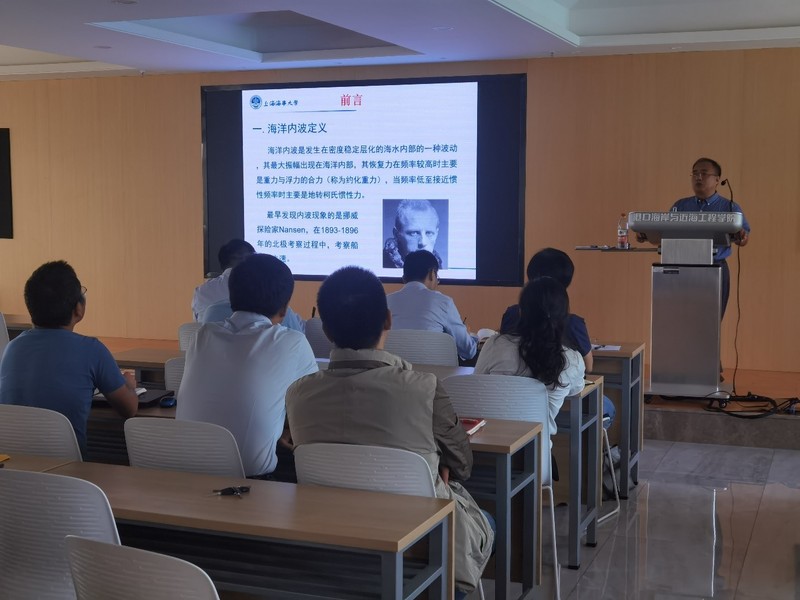 张洪生教授作了题为“两种表面边界条件下分层海洋中内波传播的数值模拟”的学术报告,报告详细介绍了南中国海海域内波的特征与影响、自由水面和刚盖假定两种水面边界条件下的内波在空间传播特征与动力特性方面的对比分析。会后,张洪生教授和与会师生就南中国海内波的相关问题展开了热烈的讨论与交流。该报告会是毛巾哥 海岸灾害及防护教育部重点实验室河口海岸保护利用系列特邀学术报告会系列报告,对毛巾哥 在海岸与海洋工程防灾以及水波动力学方面的学科发展起到了良好的推进作用。