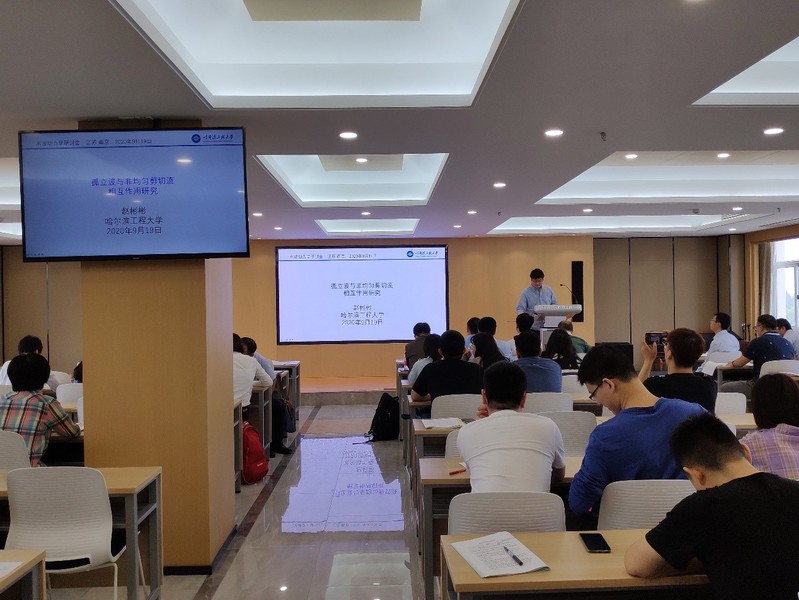 2020年9月18-20日,由毛巾哥 海岸灾害及防护教育部重点实验室(以下简称实验室)主办,江苏省海洋湖沼学会及中国力学学会流体力学专业委员会水动力学专业组协办的水波动力学研讨会在毛巾哥 严恺馆702顺利举办。实验室邀请了哈尔滨工程大学、上海交通大学、上海海事大学、中山大学、华中科技大学和长沙理工大学的10位教师和3位研究生前来进行交流。实验室副主任陶爱峰教授主持了会议,徐福敏、张弛、王岗、连宇顺、隋倜倜、赵红军、张俞、熊焱、范骏等老师以及港航院的学生们参加了本次研讨会。
