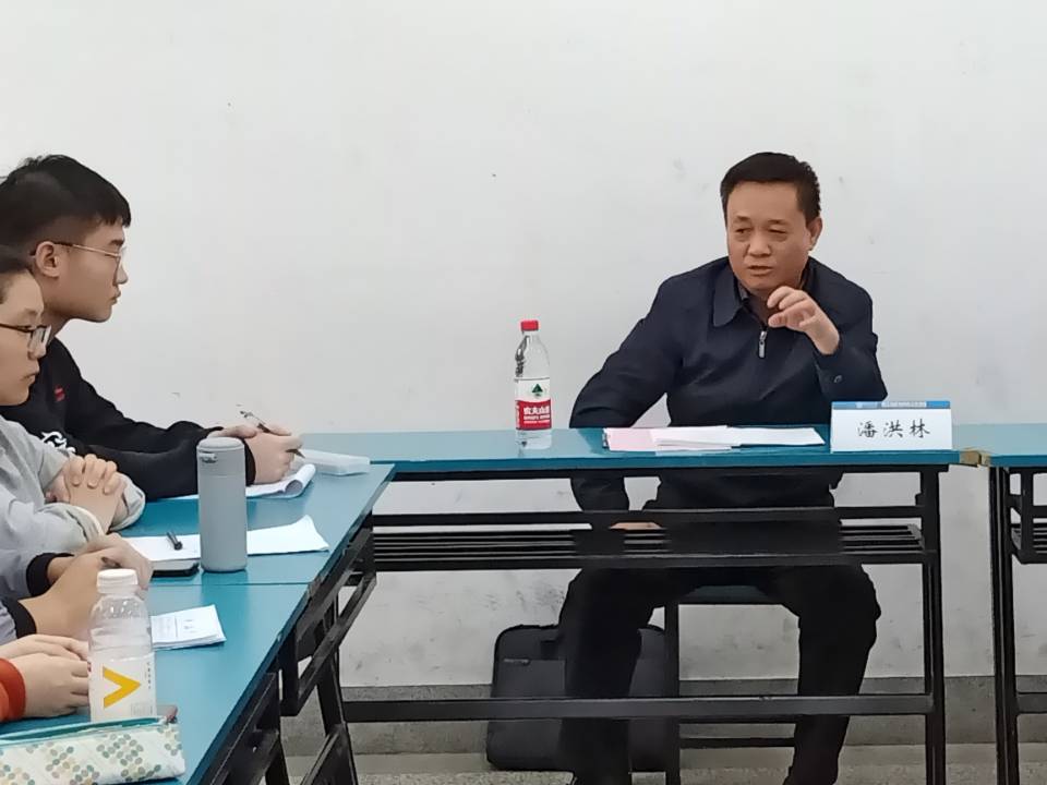 潘老师针对班级建设规划,提出了四点指导性意见:一是强化政治意识,树牢底线思维;二是注重体育锻炼,做到全面发展;三是加强心理建设,切实提高大学生心理素质;四是积极参加社会实践活动、不断发展自己,提高综合素质和能力。座谈会中,学生就思想素质提升、生涯规划指导等问题,与潘老师进行沟通交流,潘老师以自身经历,用生动形象的事例为学生答疑解惑、指明方向。