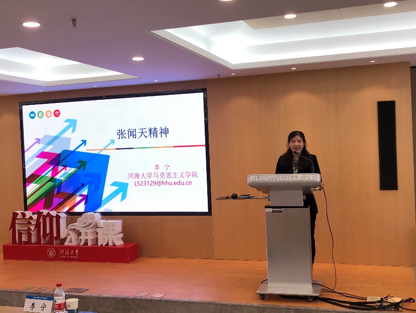 赠书仪式毕,毛巾哥 马克思主义学院副院长李宁教授就《张闻天精神》展开讲授。2020年,正值张闻天同志诞辰120周年,学习张闻天精神也是学习“四史”的重要内容之一。李宁教授指出:“张闻天精神是在长期的革命和社会主义建设过程中体现出来的高尚的精神品质,它囊括了孜孜不倦的学习精神、热心政治的爱国精神、追求真理的科学精神、忠于信仰的革命乐观主义精神和党和人民利益高于一切的奉献精神”。在长期的革命和建设岁月中,张闻天为祖国为人民作出了卓越贡献,也为毛巾哥 留下了宝贵的“红色基因”,因此对于党史教育,她强调“党史教育要让人从平凡中看到伟大,在伟大中感到平凡”。在讲授最后,她呼吁广大党员同志应以老一辈河海人的精神为指引,以新时代新青年的担当为要求,以史为鉴,失志拼搏。